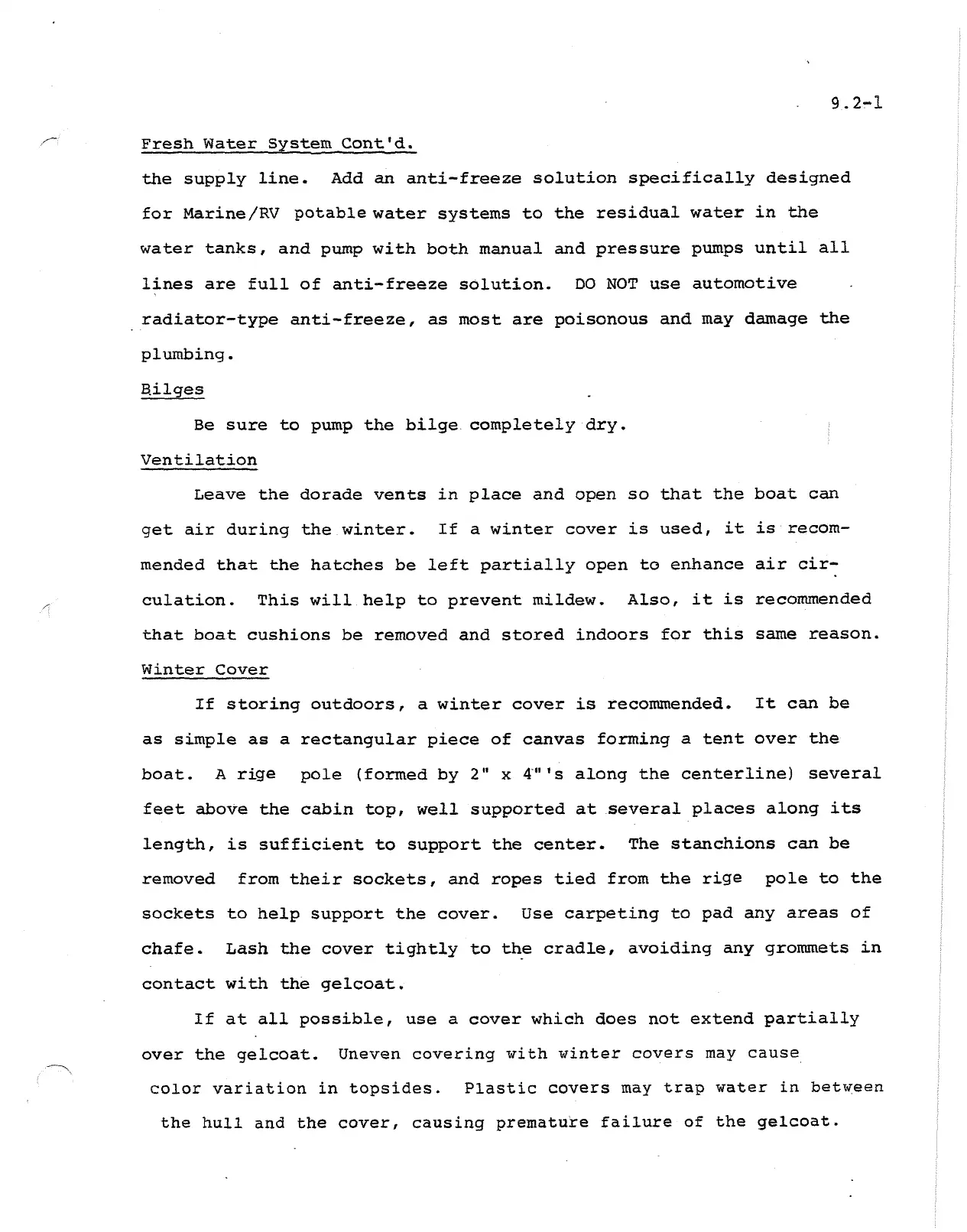 over the gelcoat. Uneven covering with winter covers may cause