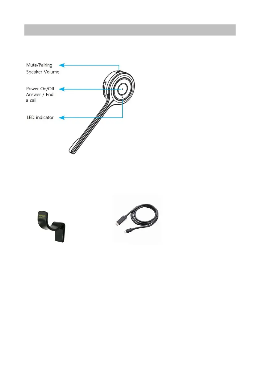 If the headset is out of battery, it can be charged via a USB connector and it may