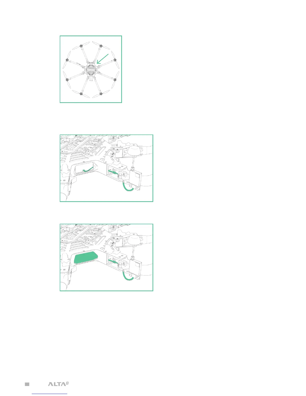 7. Zip tie the FPV transmitter lead to the boom cable bundle for strain relief
