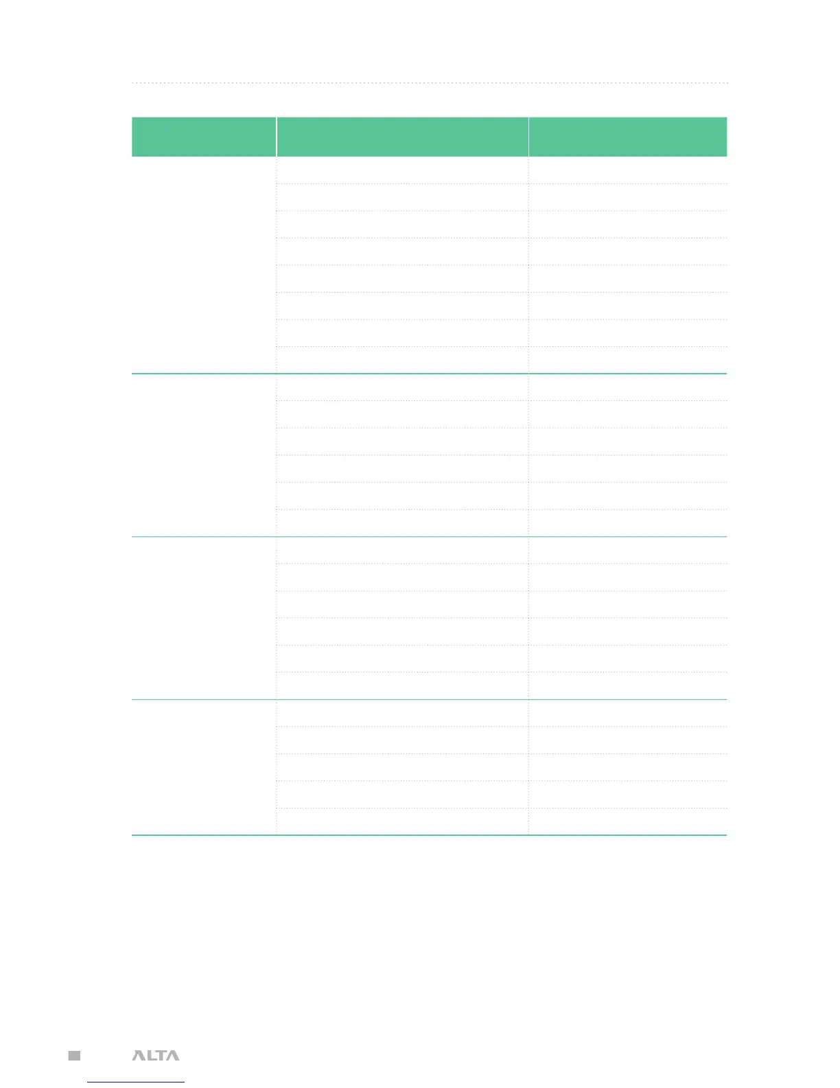 Freefly ALTA - Appendix A. Default Tuning Values