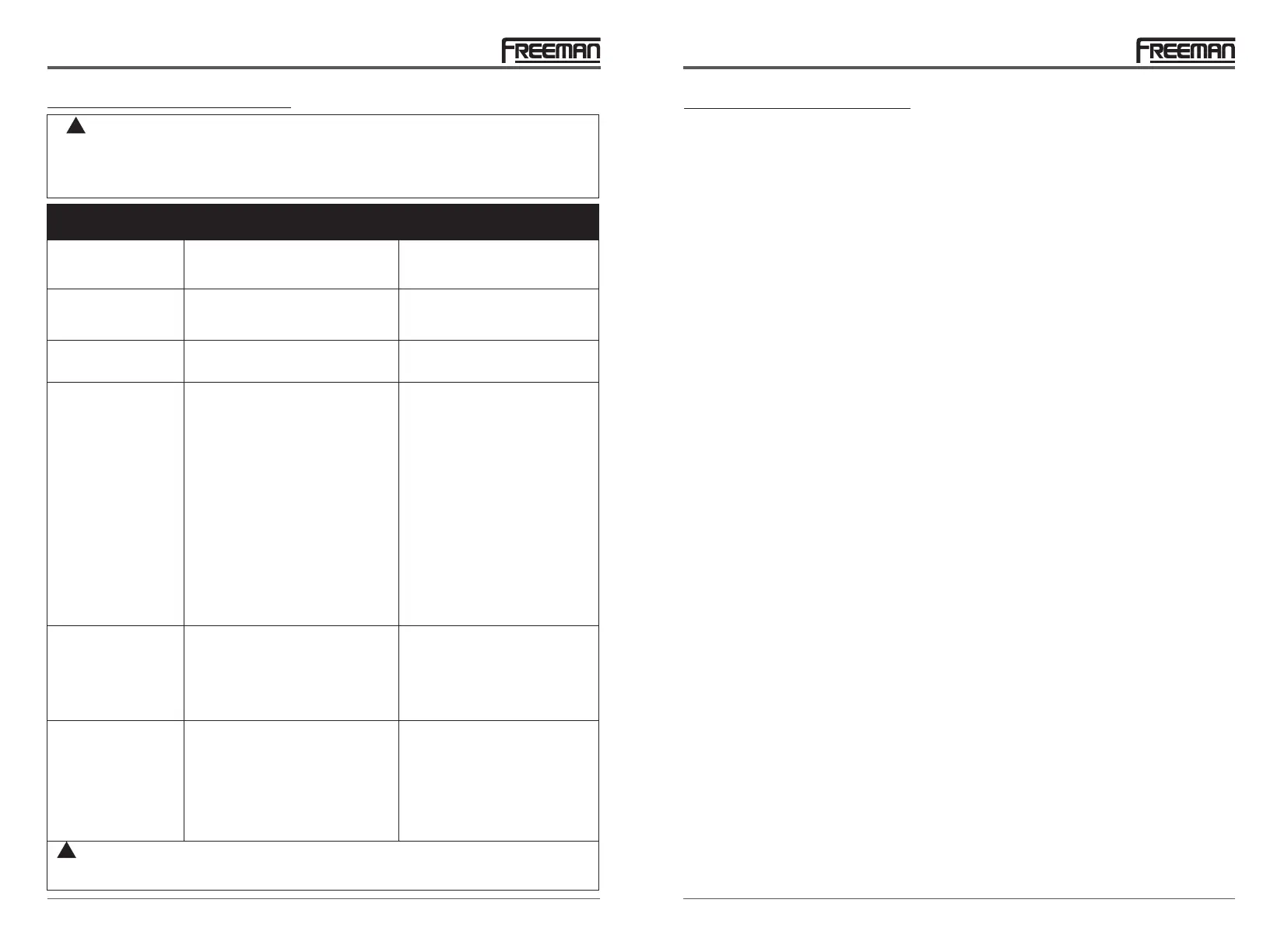 Use sólo piezas de repuesto autorizadas por Freeman. Si tiene preguntas llame al 1-888-669-5672