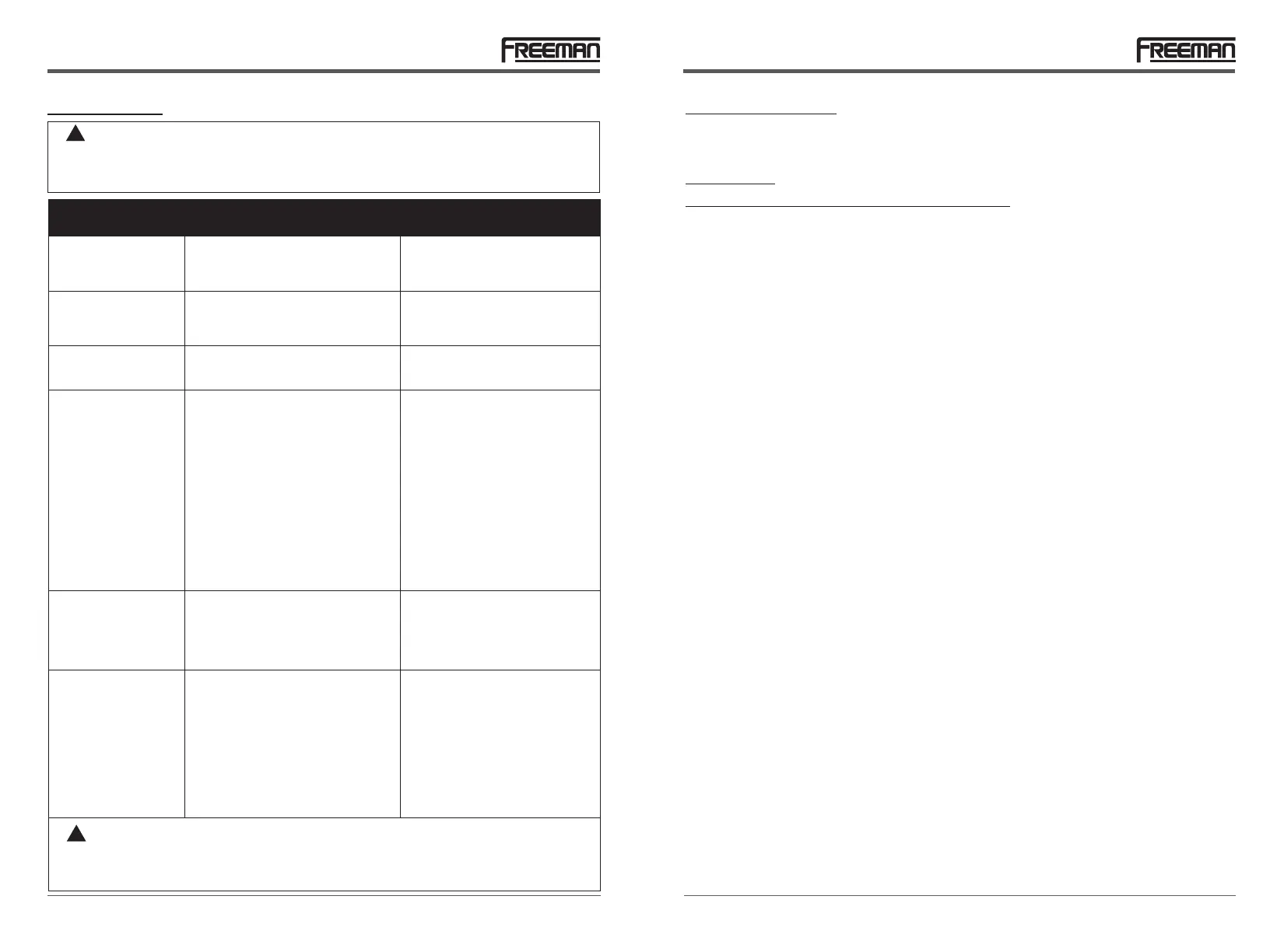 N’utilisez que des pièces autorisées par Freeman pour la réparation. Si vous avez des
