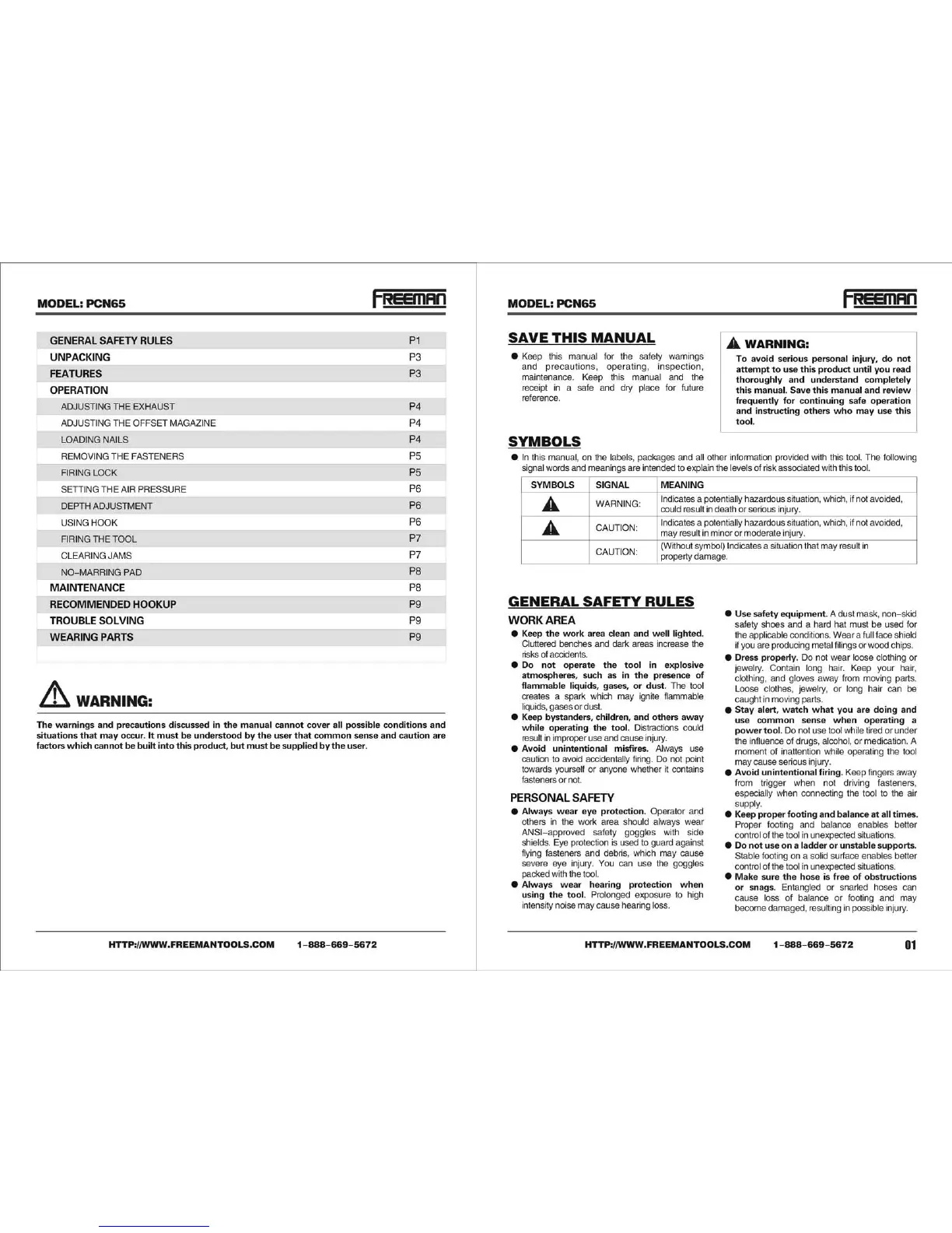 Freeman PCN65 - General Safety Rules; Work Area Precautions; Personal Safety Guidelines