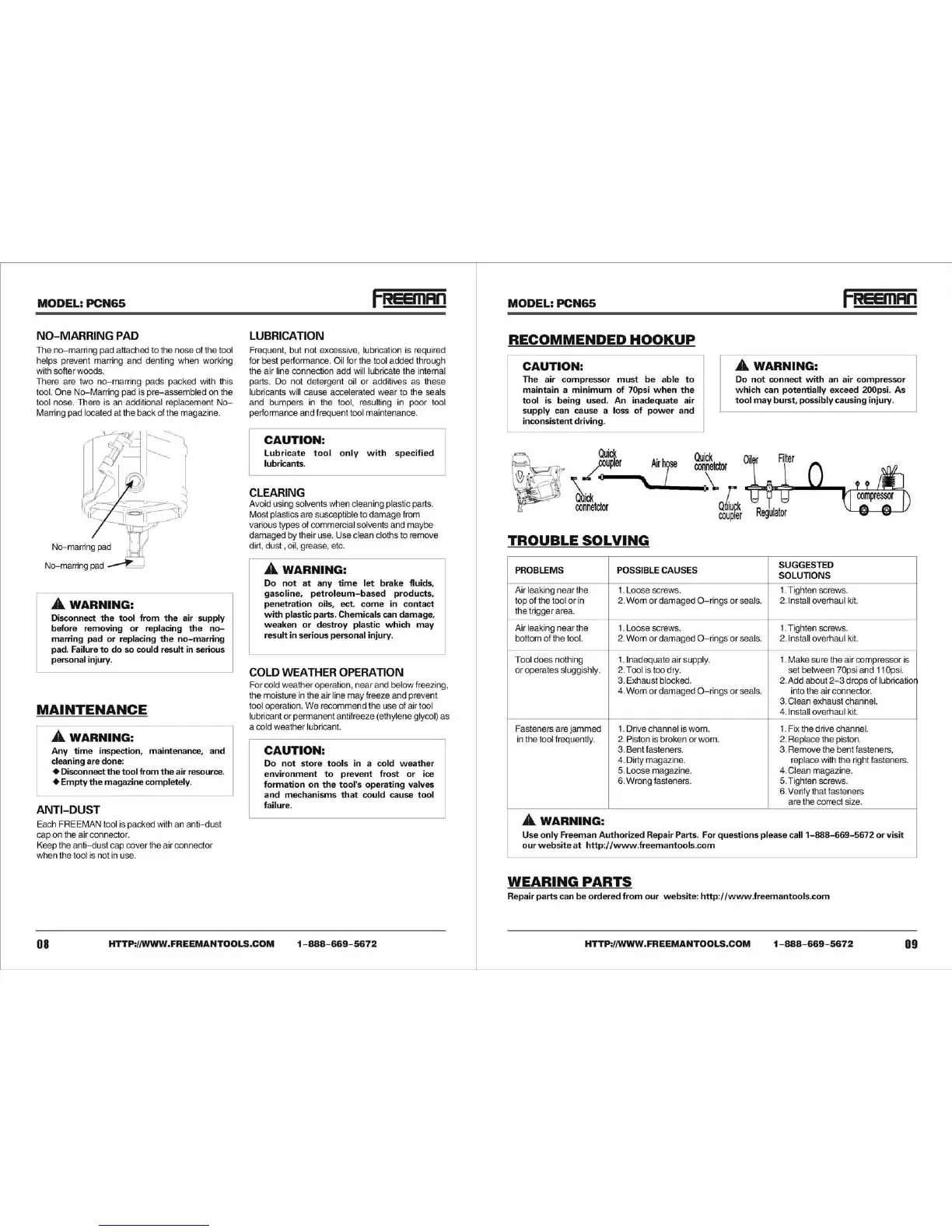 Freeman PCN65 - Maintenance and Troubleshooting; General Maintenance; Lubrication Guidelines; Trouble Solving