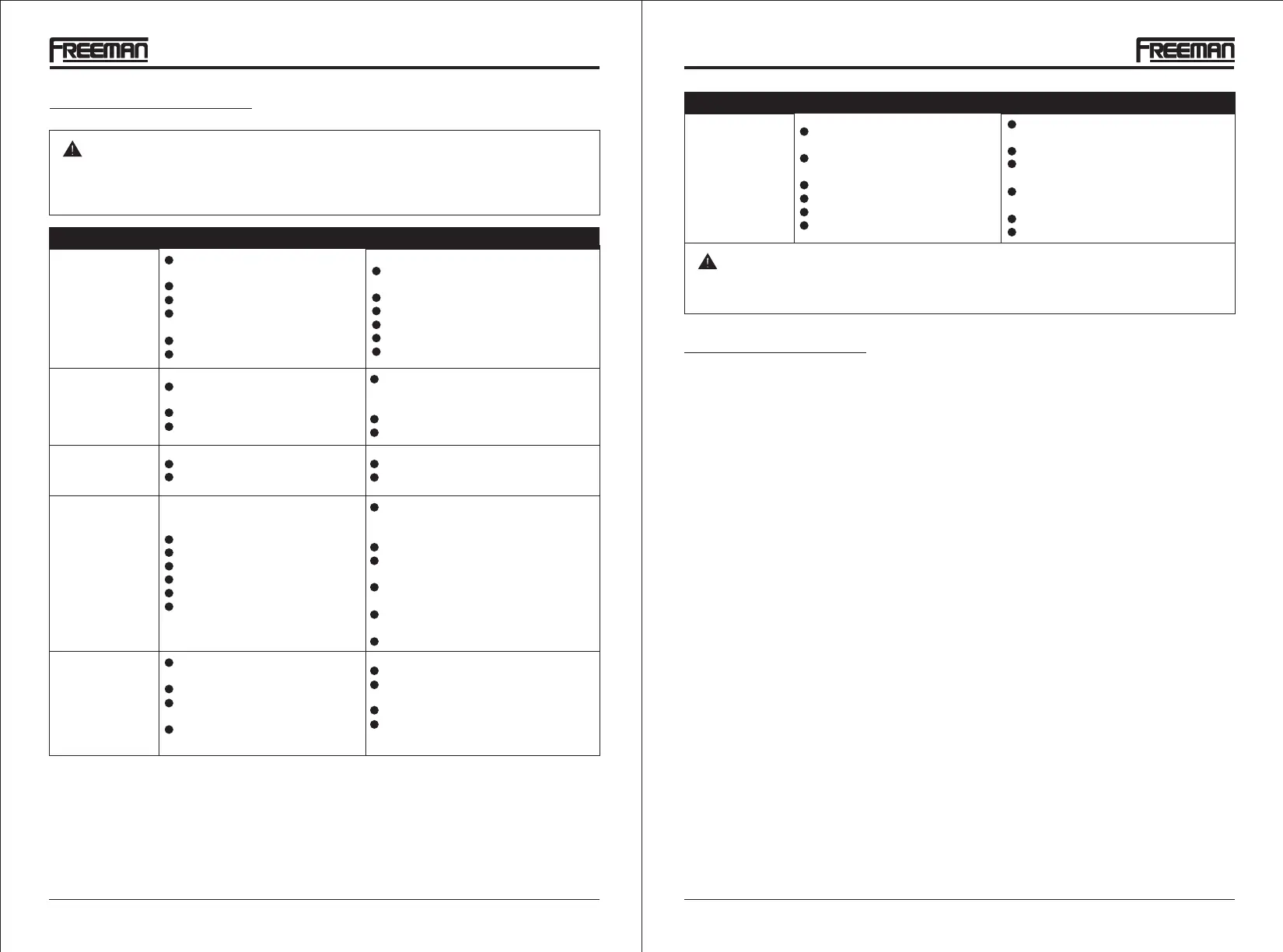 Only use Freeman Authorized Repair Parts. For questions please call 1-888-669-5672 or