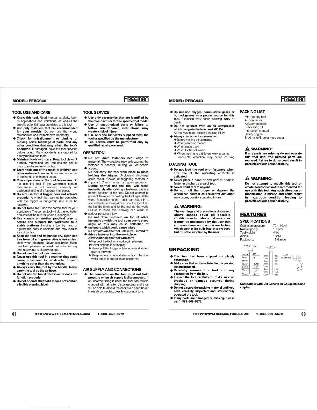 Freeman PFBC940 - Tool Use and Care; Tool Knowledge and Condition; Tool Service and Lubrication; Safe Operation Guidelines