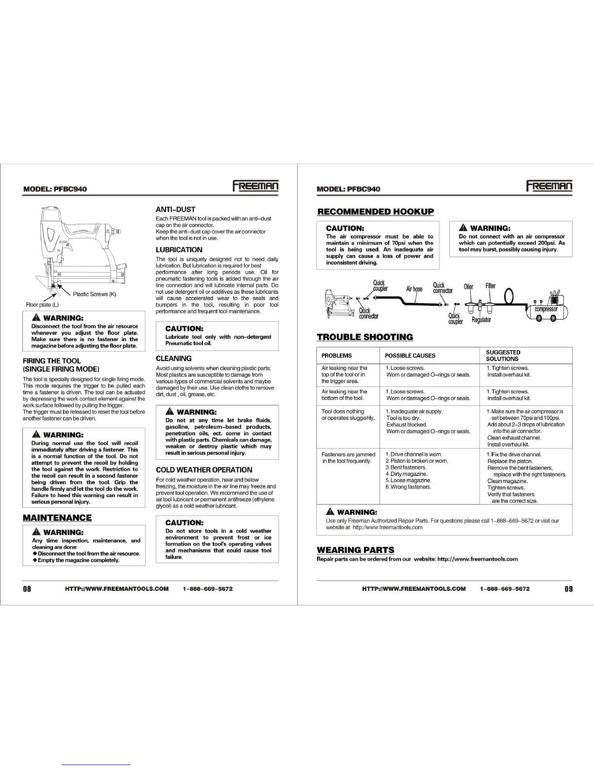 Freeman PFBC940 - Tool Operation and Maintenance; Firing the Tool; General Maintenance; Cold Weather Operation
