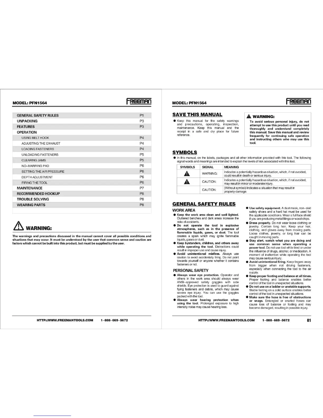 Freeman PFN1564 - General Safety Rules; Work Area Safety; Personal Safety Precautions