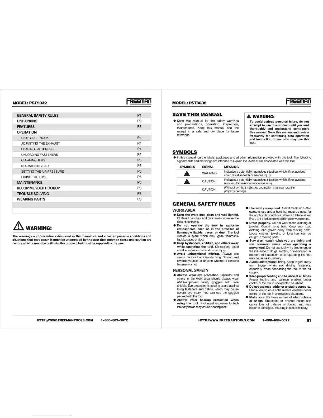 Freeman PST9032 - General Safety Rules; Work Area; Personal Safety; Save This Manual