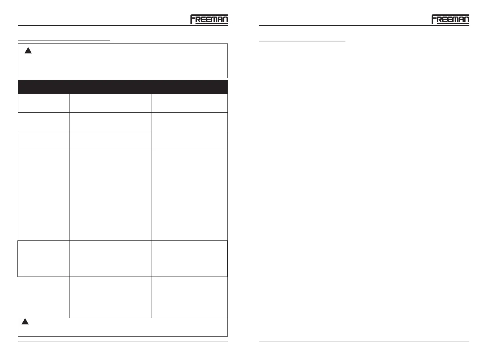 Use sólo piezas de repuesto autorizadas por Freeman. Si tiene preguntas llame al 1-888-669-5672