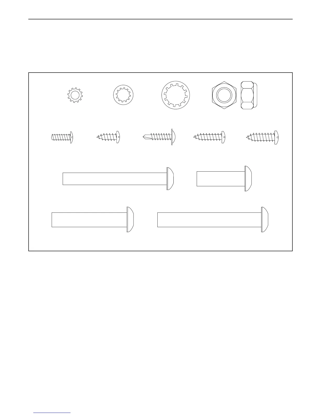 Use the drawings below to identify small parts used for assembly. The number in parentheses below each draw-