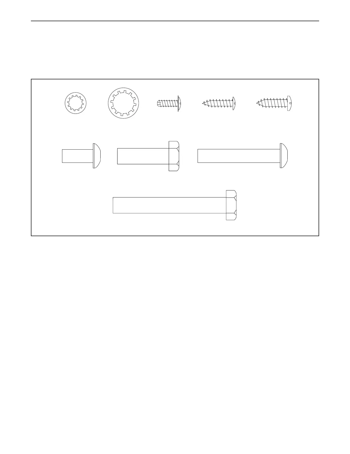 Use the drawings below to identify small parts used for assembly. The number in parentheses below each draw-