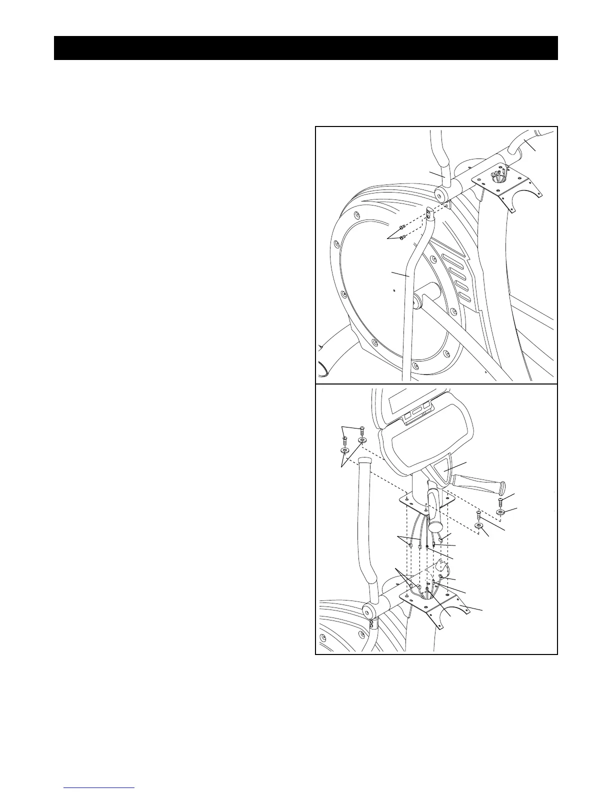 Assembly requires two persons. Set the elliptical trainer in a cleared area and remove all packing materials. Do