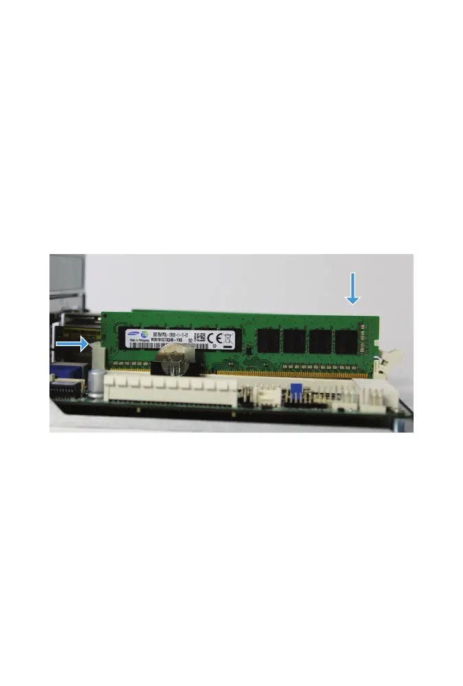 Gently insert the the memory module into the memory slot, putting the