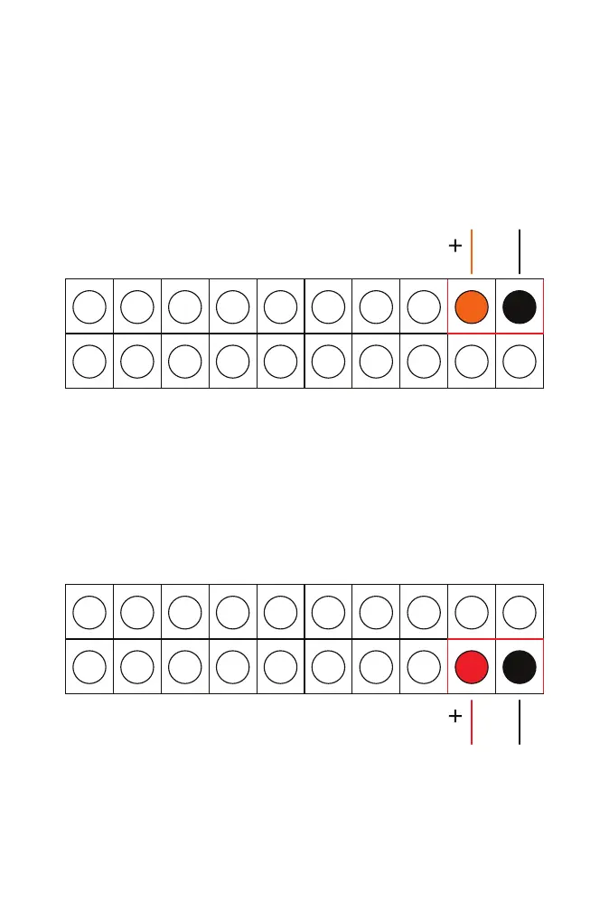 Insert the second NIC LED connector with the orange (+) wire on the left