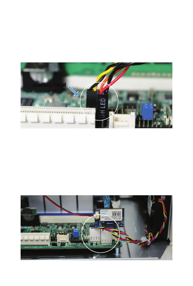 Remove the three cables connected to the Auxiliary Panel Header. With
