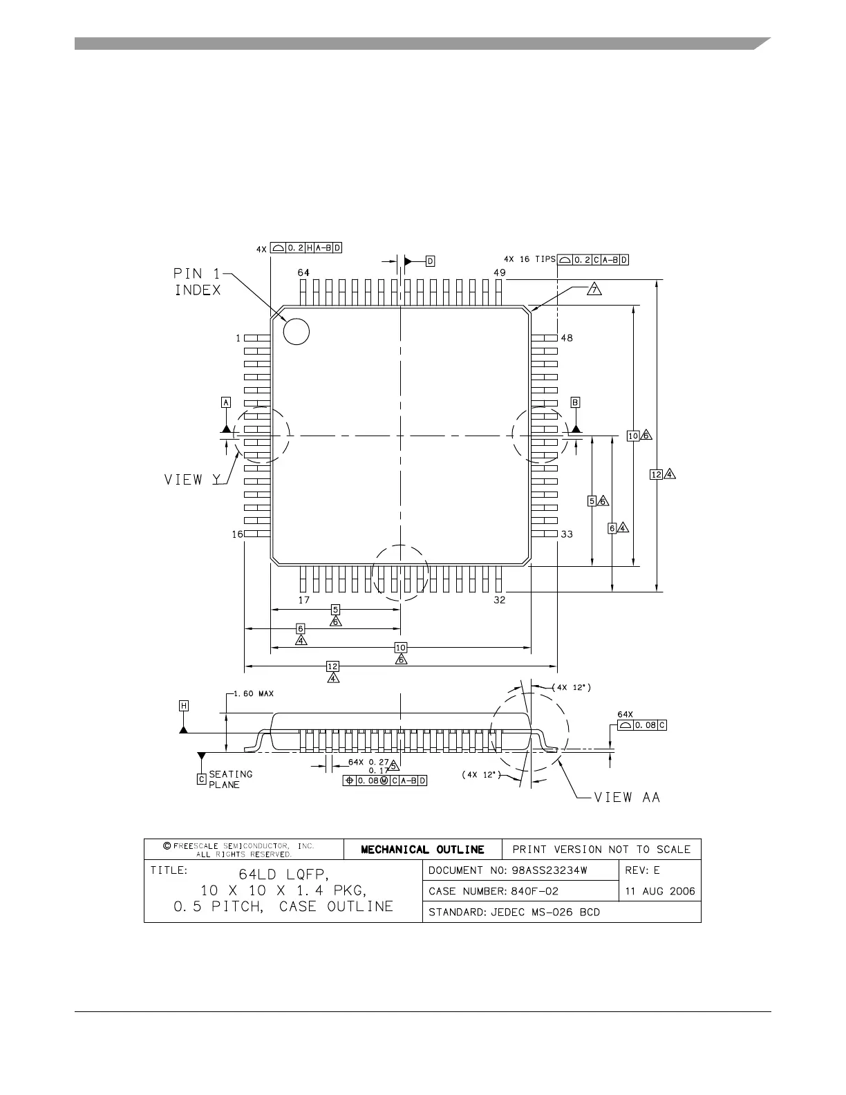 Freescale Semiconductor FlexRay MFR4310 - Figure B-1. 64-Pin LQFP Mechanical Dimensions (Case N 840 F-02)