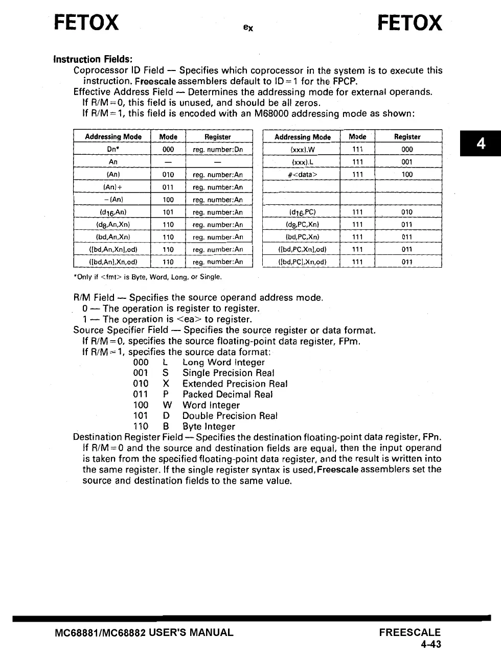 instruction. Freescale assemblers default to ID = 1 for the FPCP.