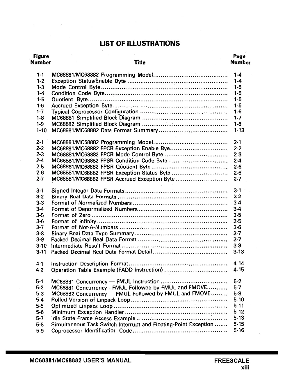 1-10 MC68881/MC68882 Data Format Summary ..................................... 1-13