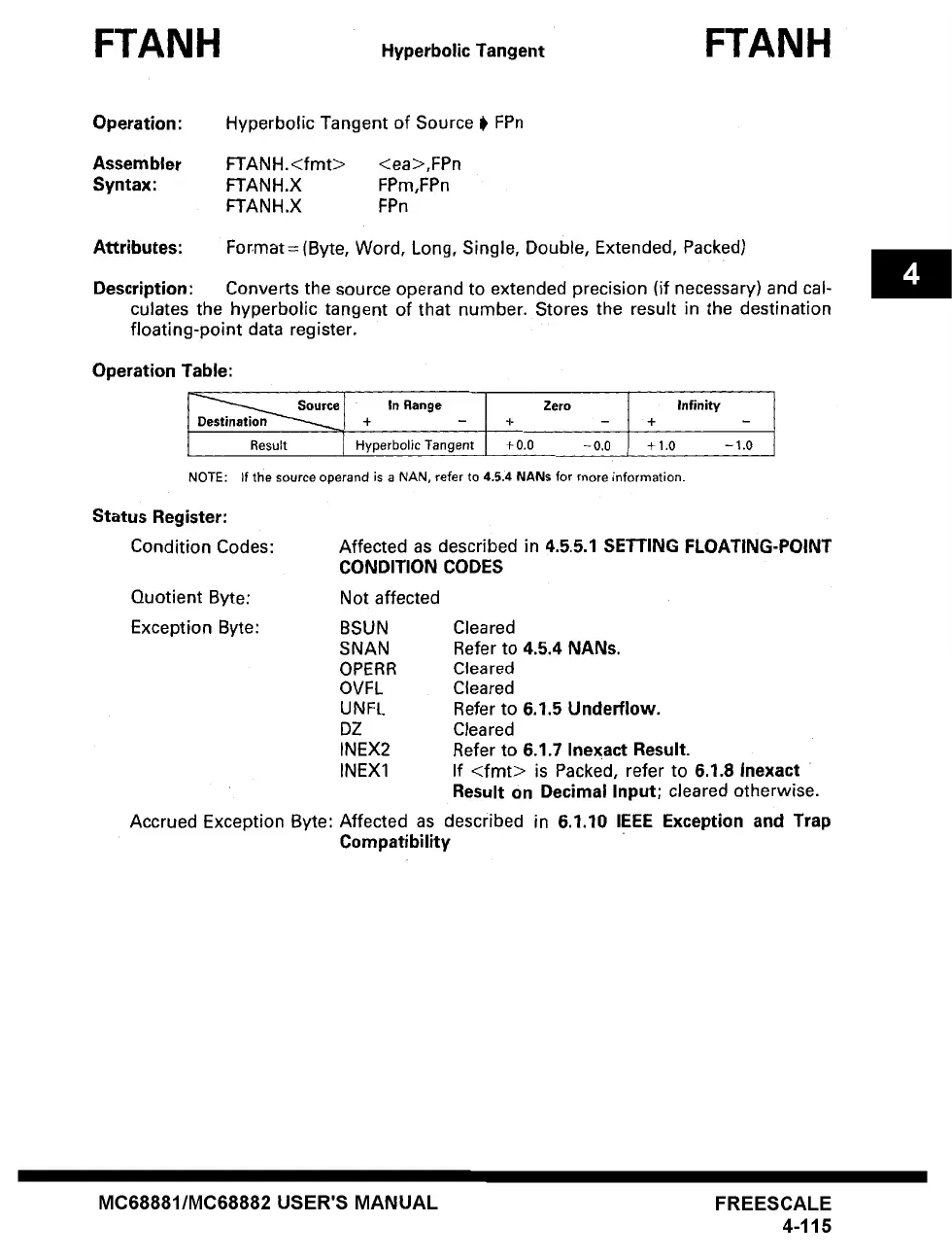 if the source operand is a NAN, refer to 4.5.4 NANs for more information.