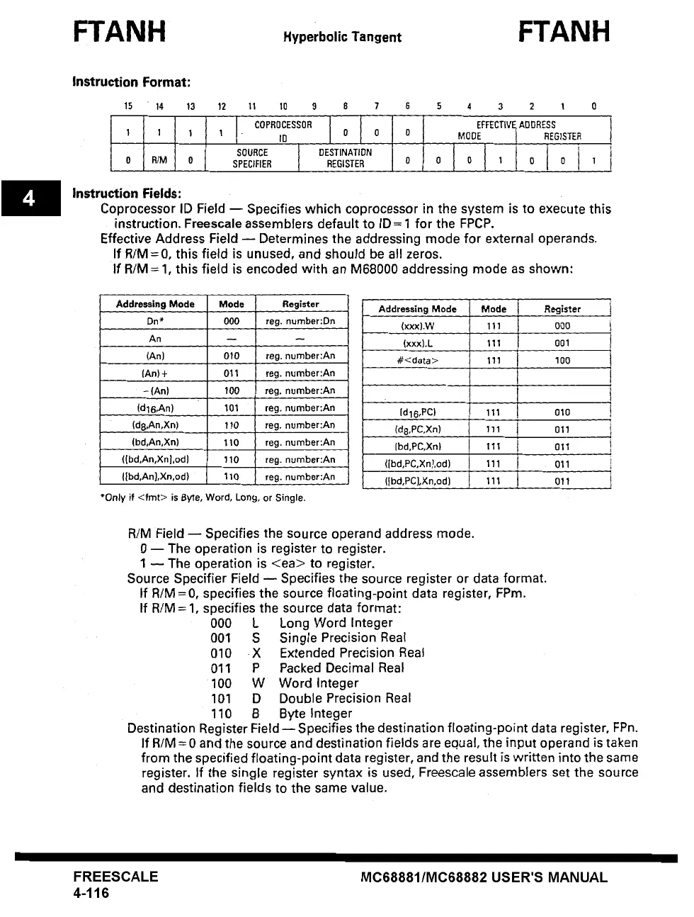 instruction. Freescale assemblers default to ID = 1 for the FPCP.
