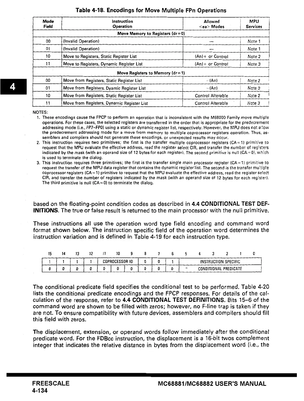 1. These encodings cause the FPCP to perform an operation that is inconsistent with the M68000 Family move multipTe