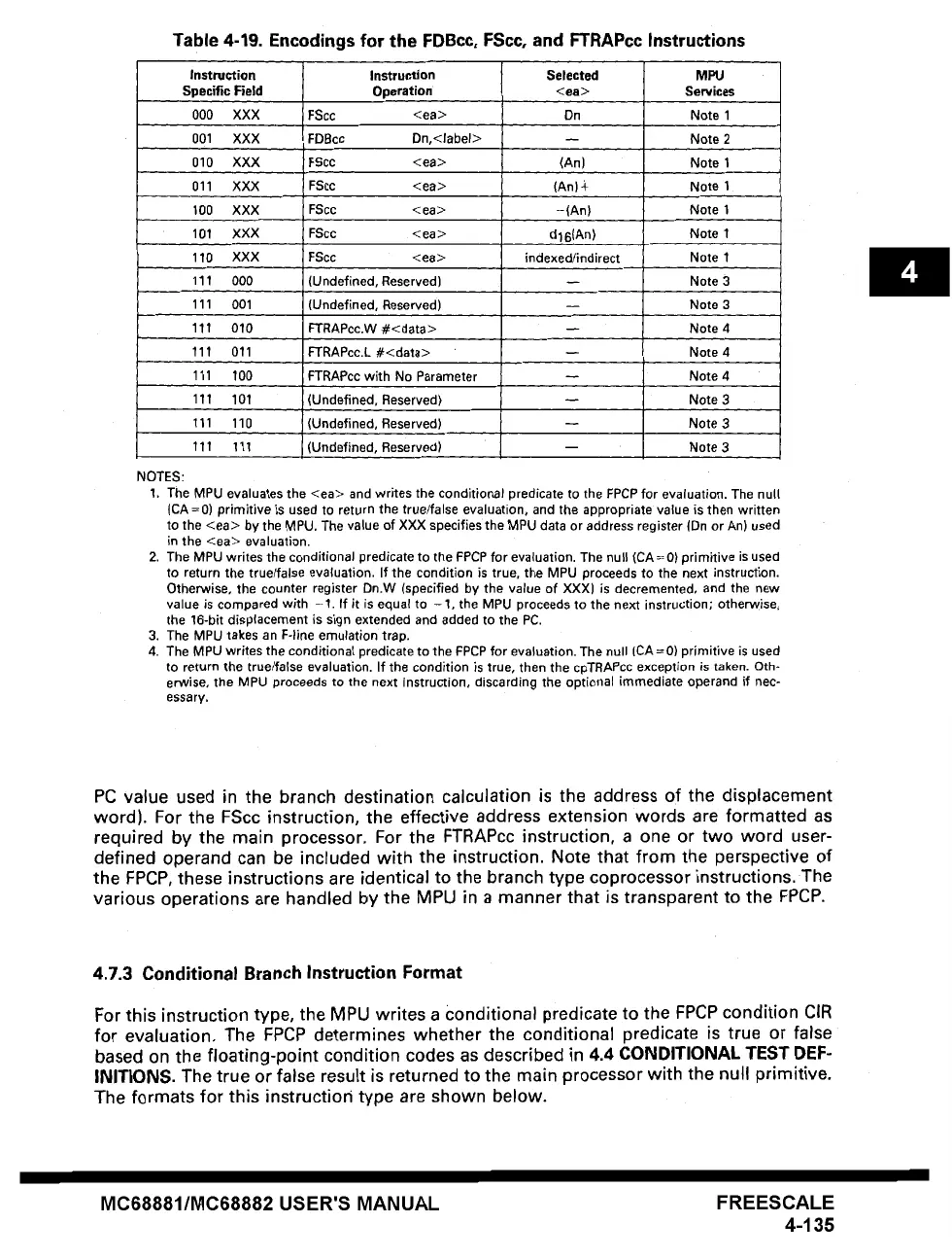 Table 4-19. Encodings for the FDBcc, FScc, and FTRAPcc Instructions