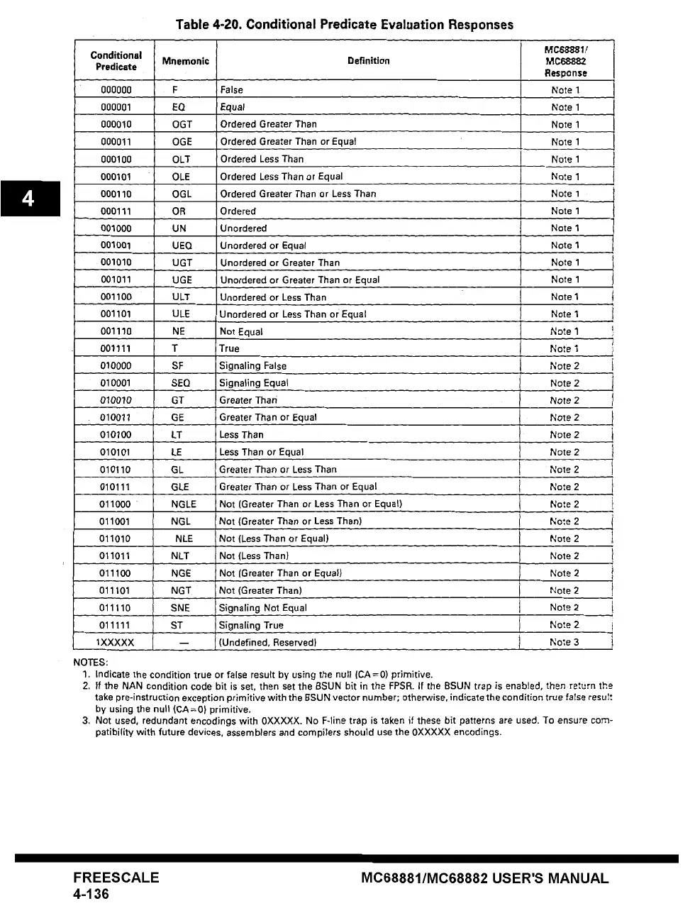 011000 NGLE Not (Greater Than or Less Than or Equal) Note 2