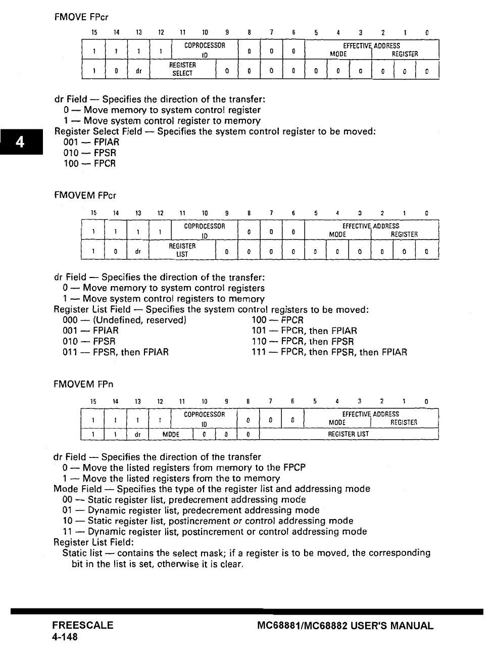 011 -- FPSR, then FPIAR 111 -- FPCR, then FPSR, then FPIAR
