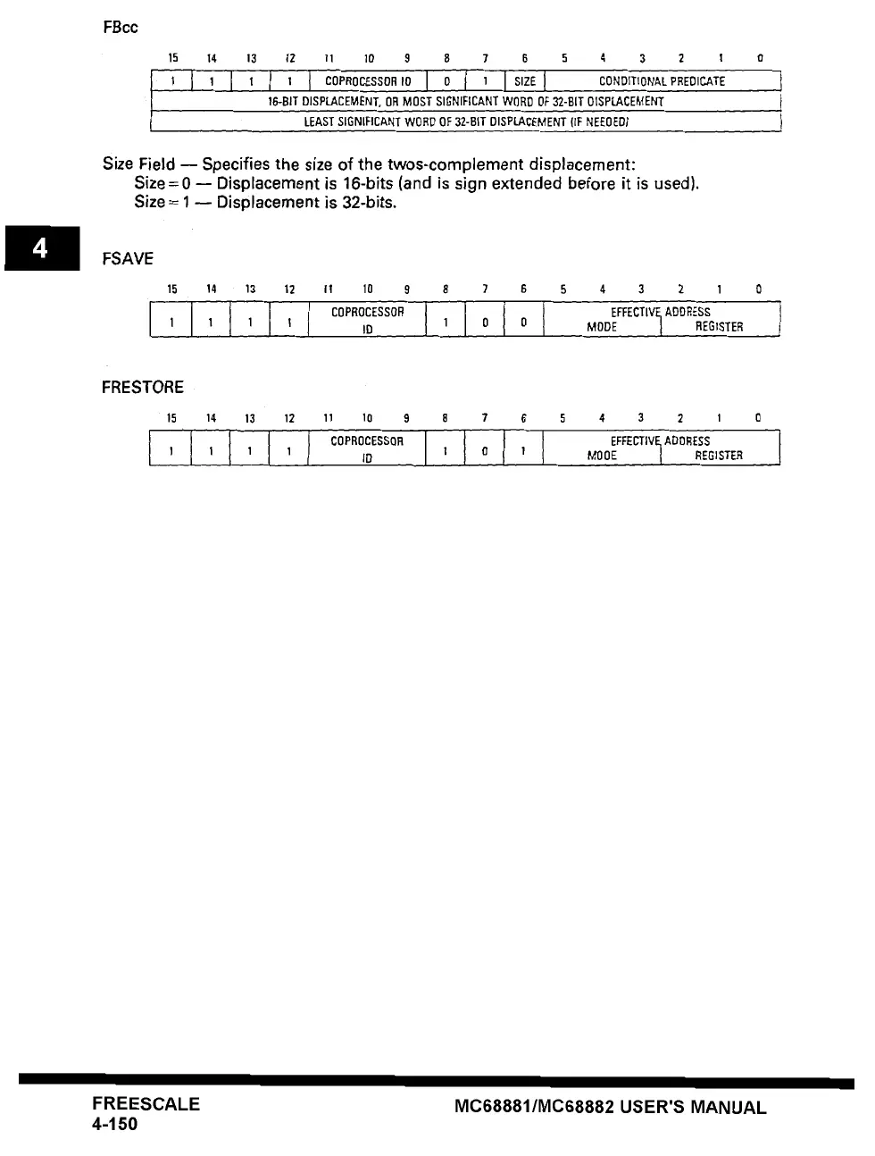Size=0 -- Displacement is 16-bits (and is sign extended before it is used).