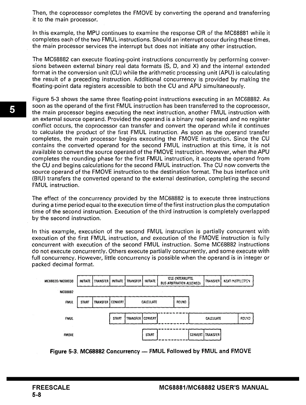 Figure 5-3 shows the same three floating-point instructions executing in an MC68882. As