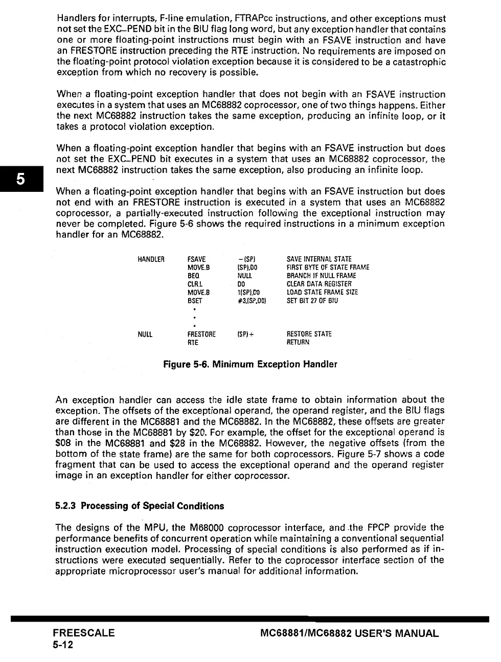 never be completed. Figure 5-6 shows the required instructions in a minimum exception