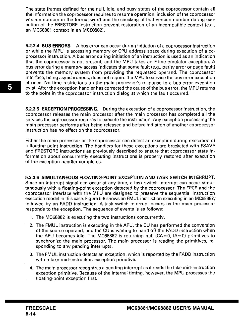 5.2.3.4 BUS ERRORS. A bus error can occur during initiation of a coprocessor instruction