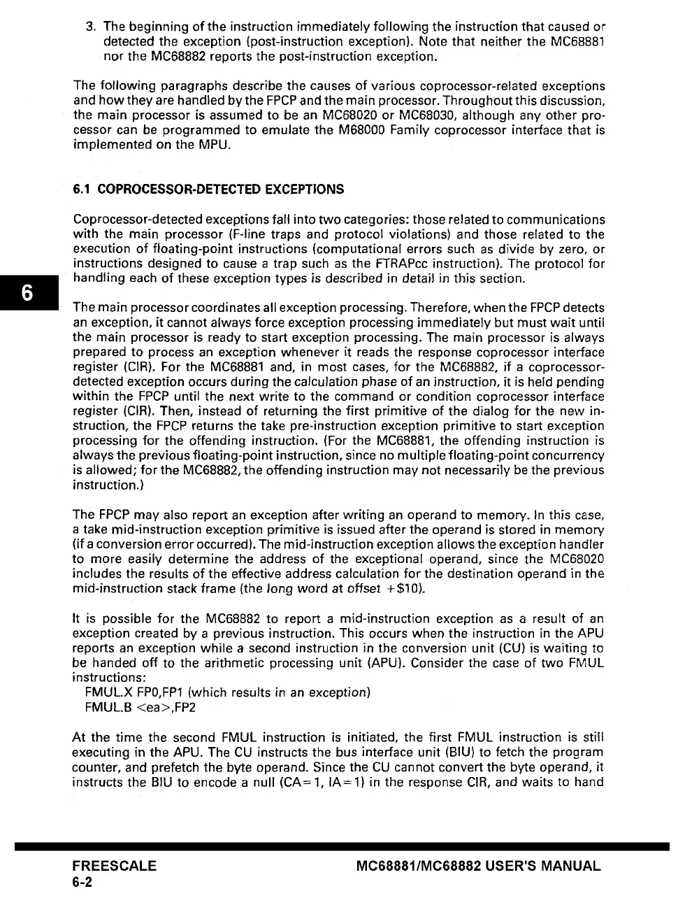 detected the exception (post-instruction exception}. Note that neither the MC68881