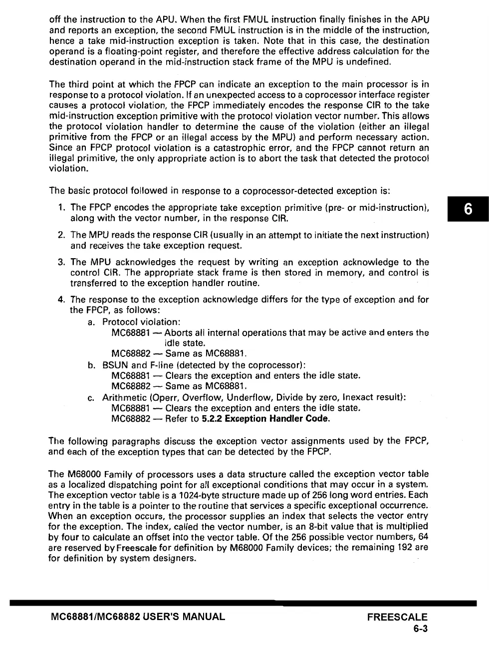 MC68882 ~ Refer to 5.2.2 Exception Handler Code.