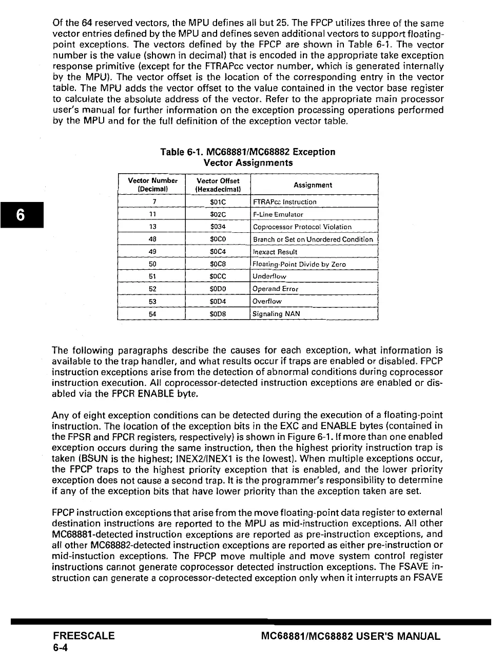 point exceptions. The vectors defined by the FPCP are shown in Table 6-1. The vector