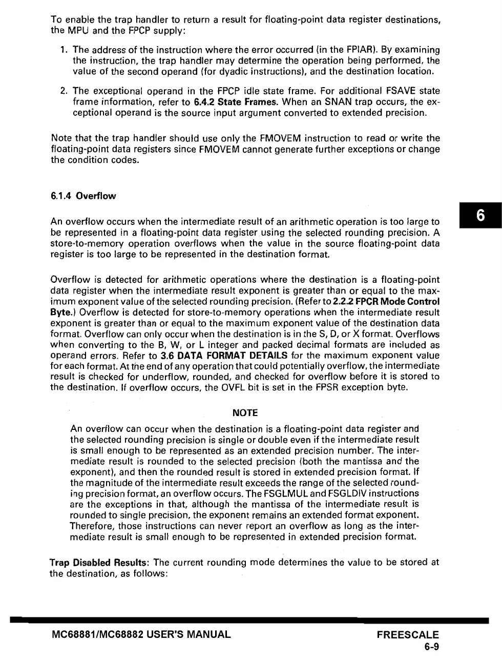 the destination. If overflow occurs, the OVFL bit is set in the FPSR exception byte.