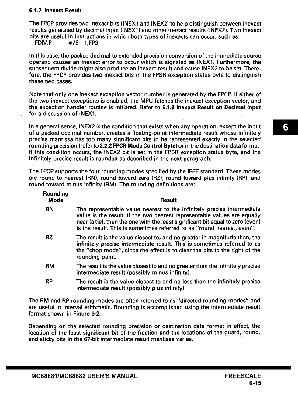 the exception handler routine is initiated. Refer to 6.1.8 Inexact Result on Decimal Input