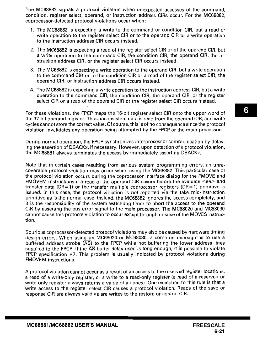 coverable protocol violation may occur when using the MC68882. This particular case of