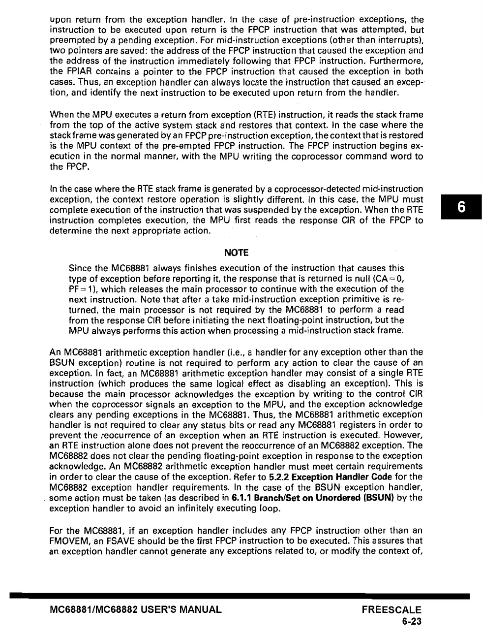 MC68882 exception handler requirements. In the case of the BSUN exception handler,