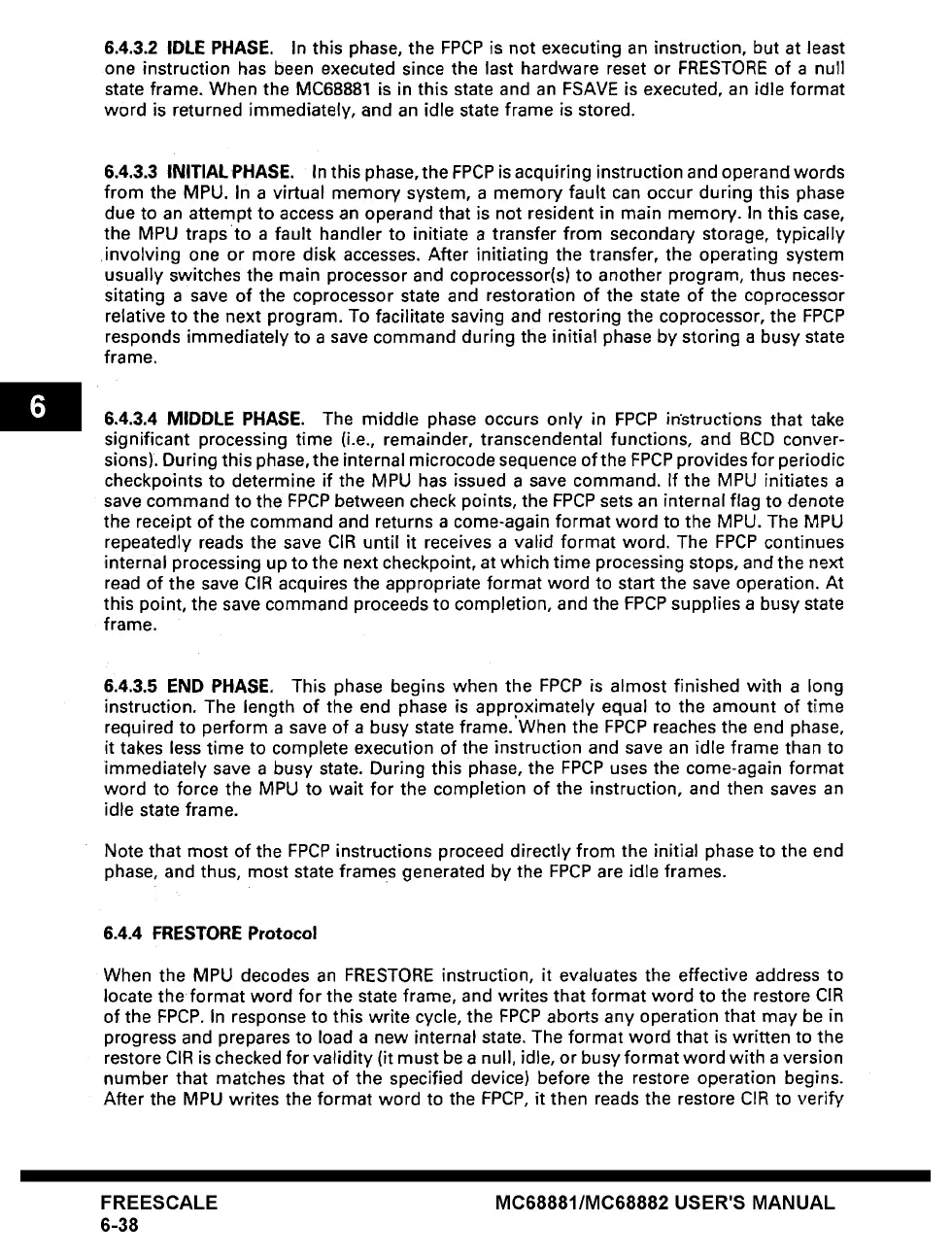 6.4.3.2 IDLE PHASE. In this phase, the FPCP is not executing an instruction, but at least