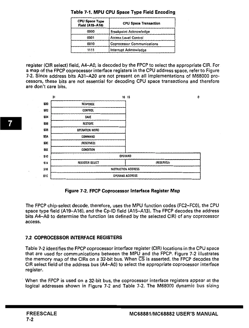 7.2 COPROCESSOR INTERFACE REGISTERS