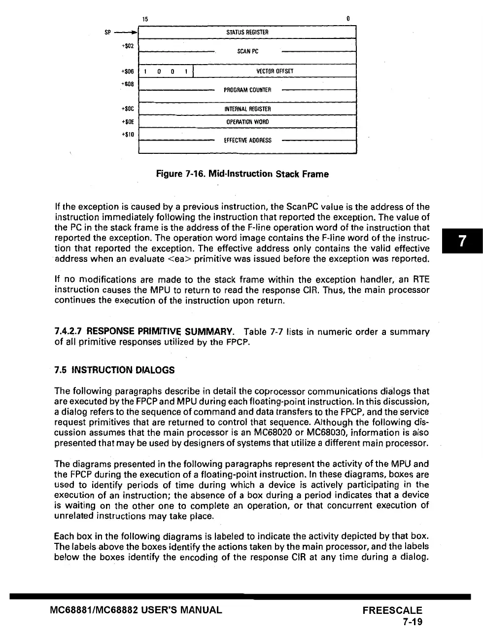 reported the exception. The operation word image contains the F-line word of the instruc-