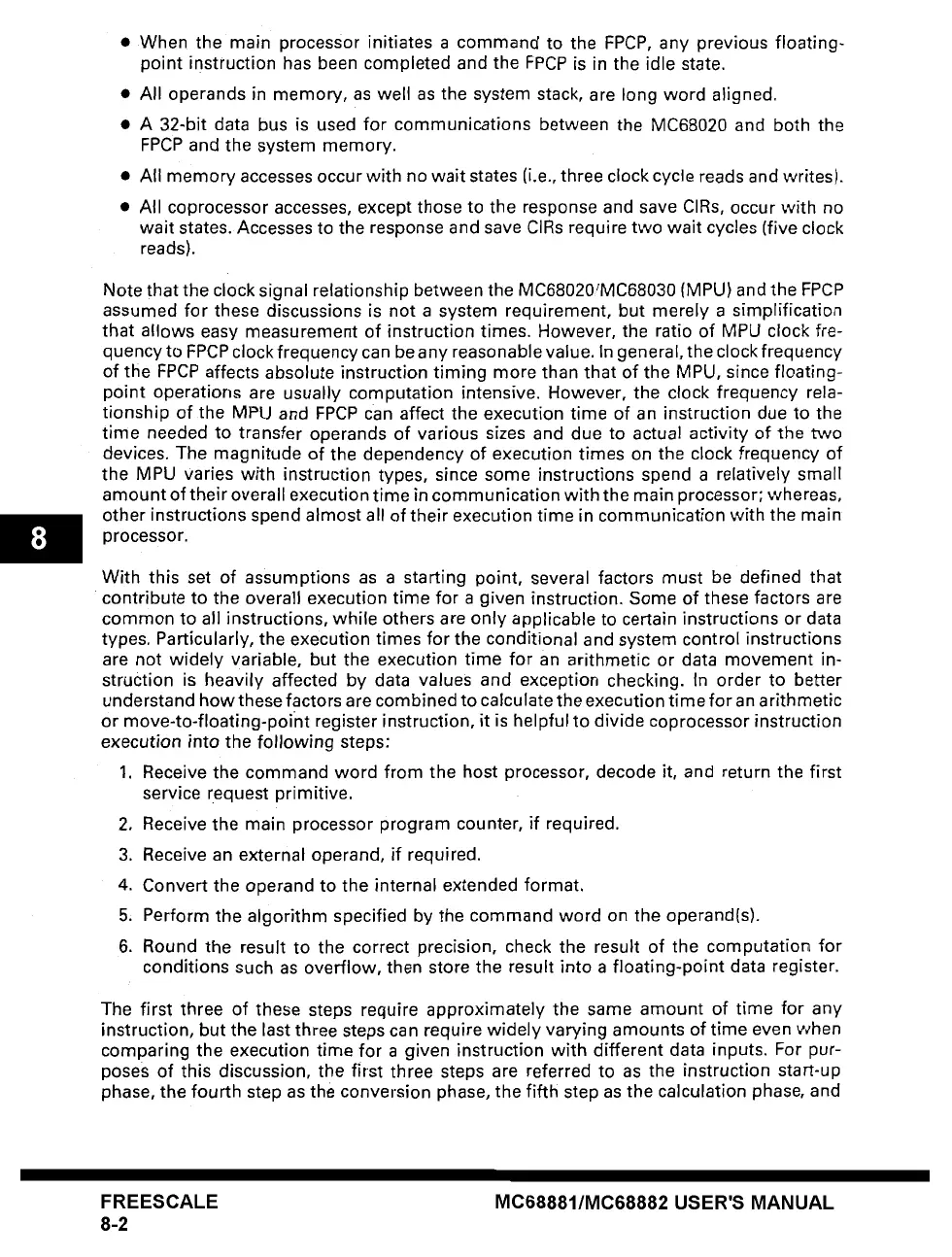of the FPCP affects absolute instruction timing more than that of the MPU, since floating-