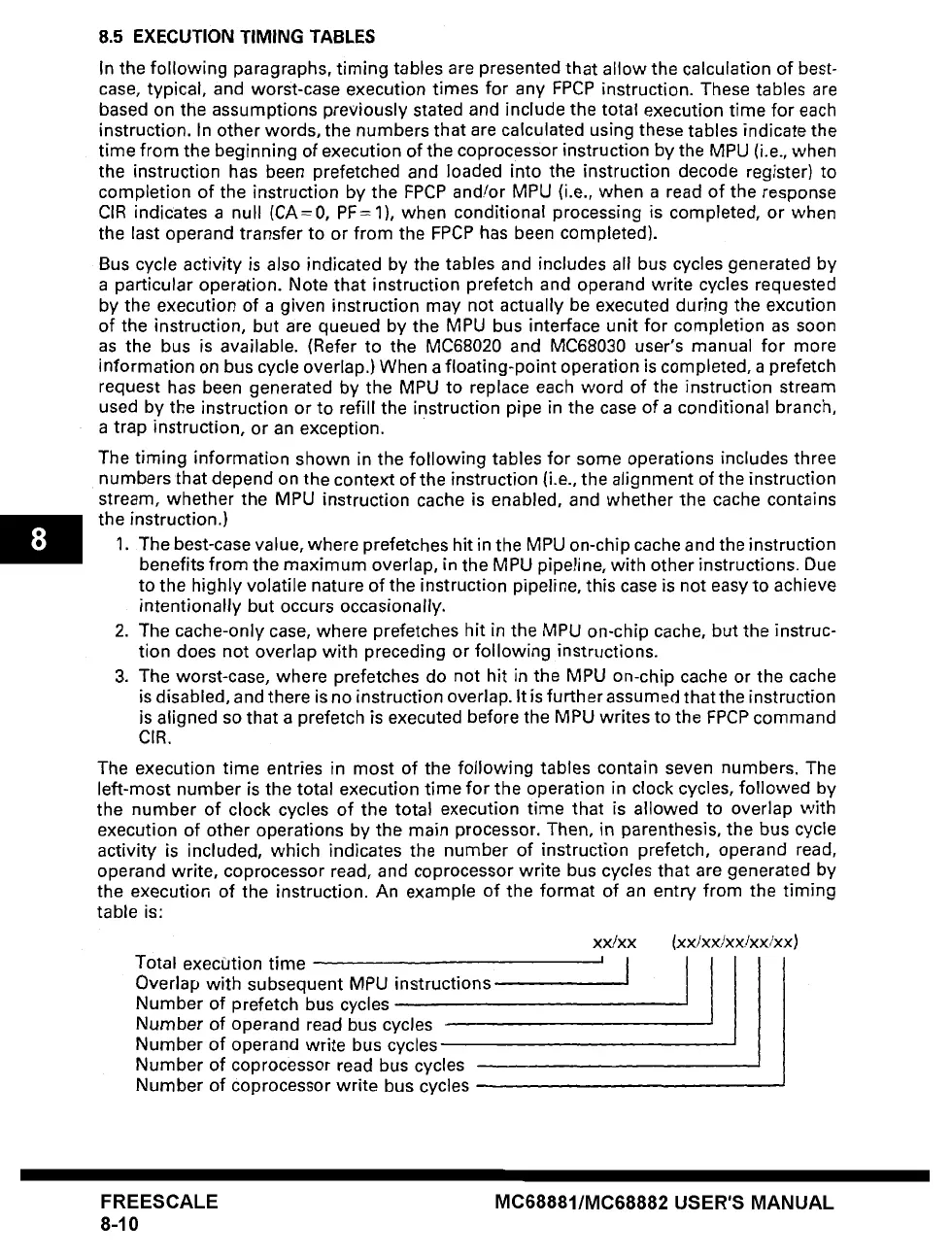 8.5 EXECUTION TIMING TABLES