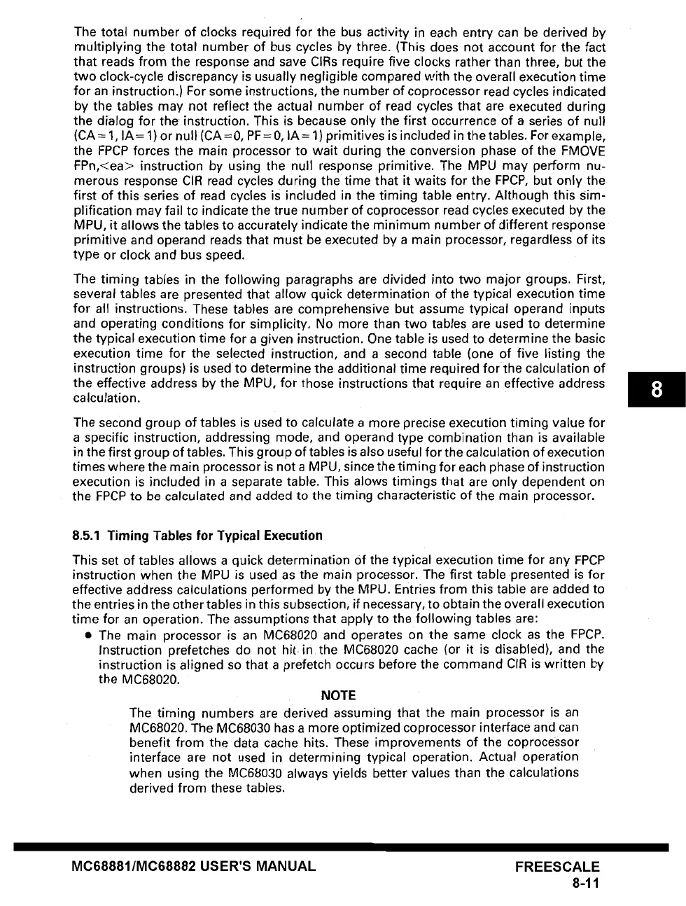 8.5.1 Timing Tables for Typical Execution