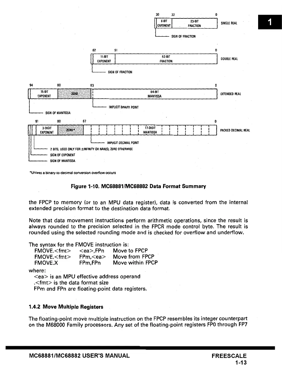 Figure 1-10. MC68881/MC68882 Data Format Summary