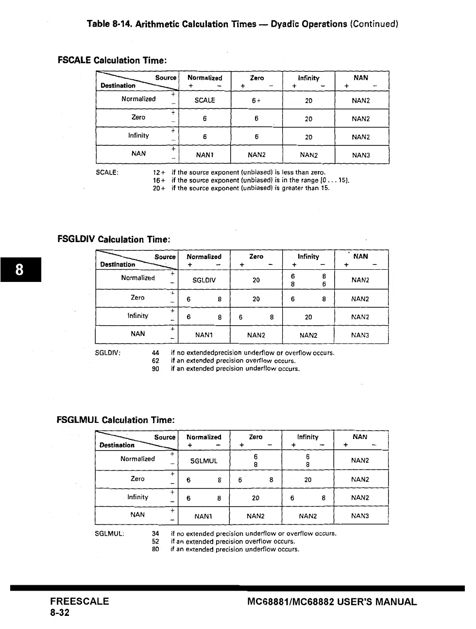 Table 8-14. Arithmetic Calculation Times -- Dyadic Operations (Continued)