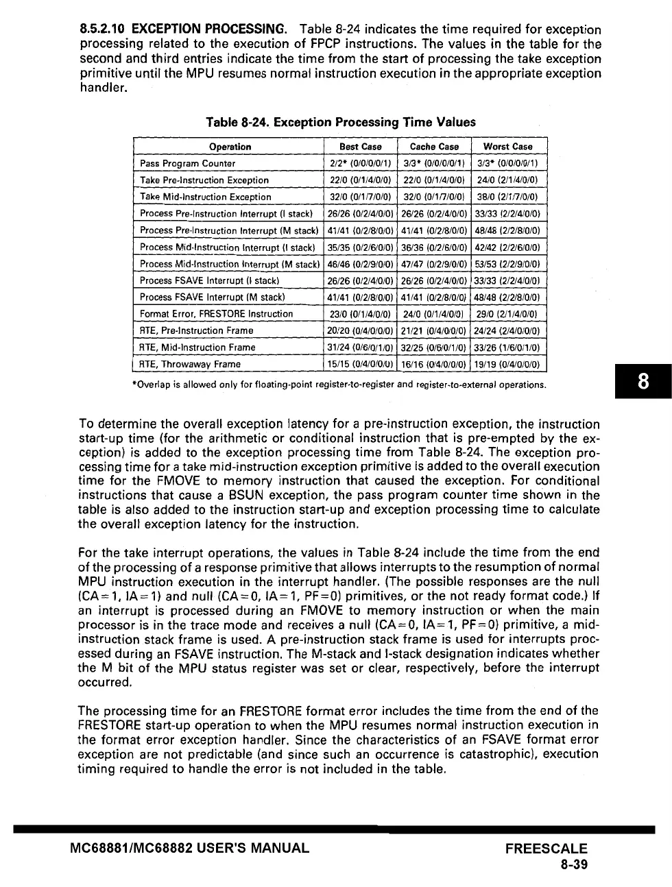 ception) is added to the exception processing time from Table 8-24. The exception pro-