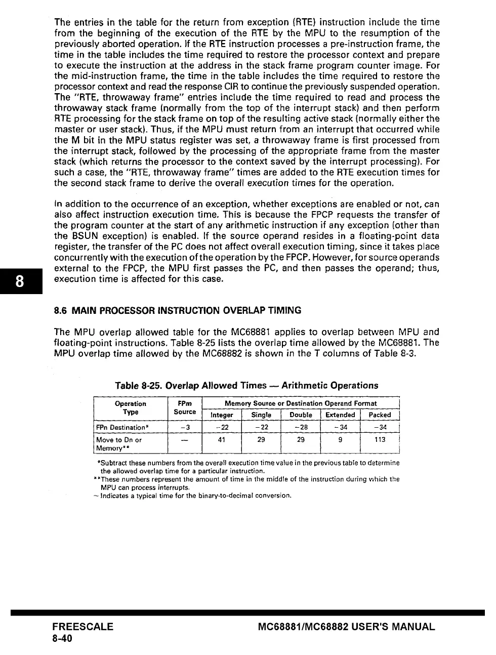 floating-point instructions. Table 8-25 lists the overlap time allowed by the MC68881. The